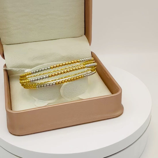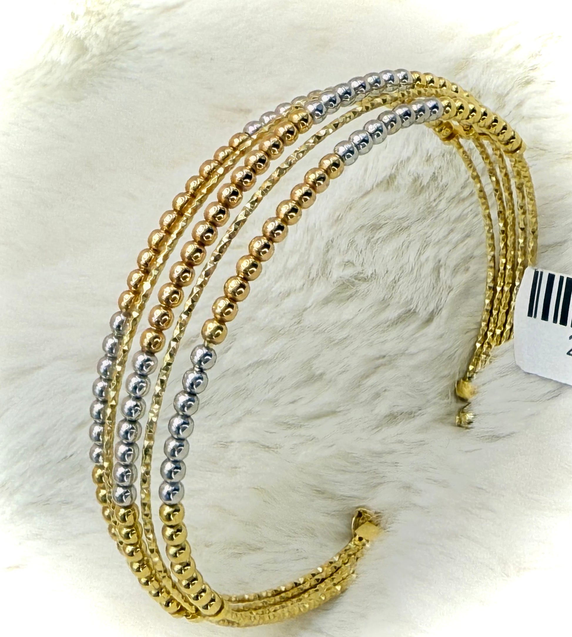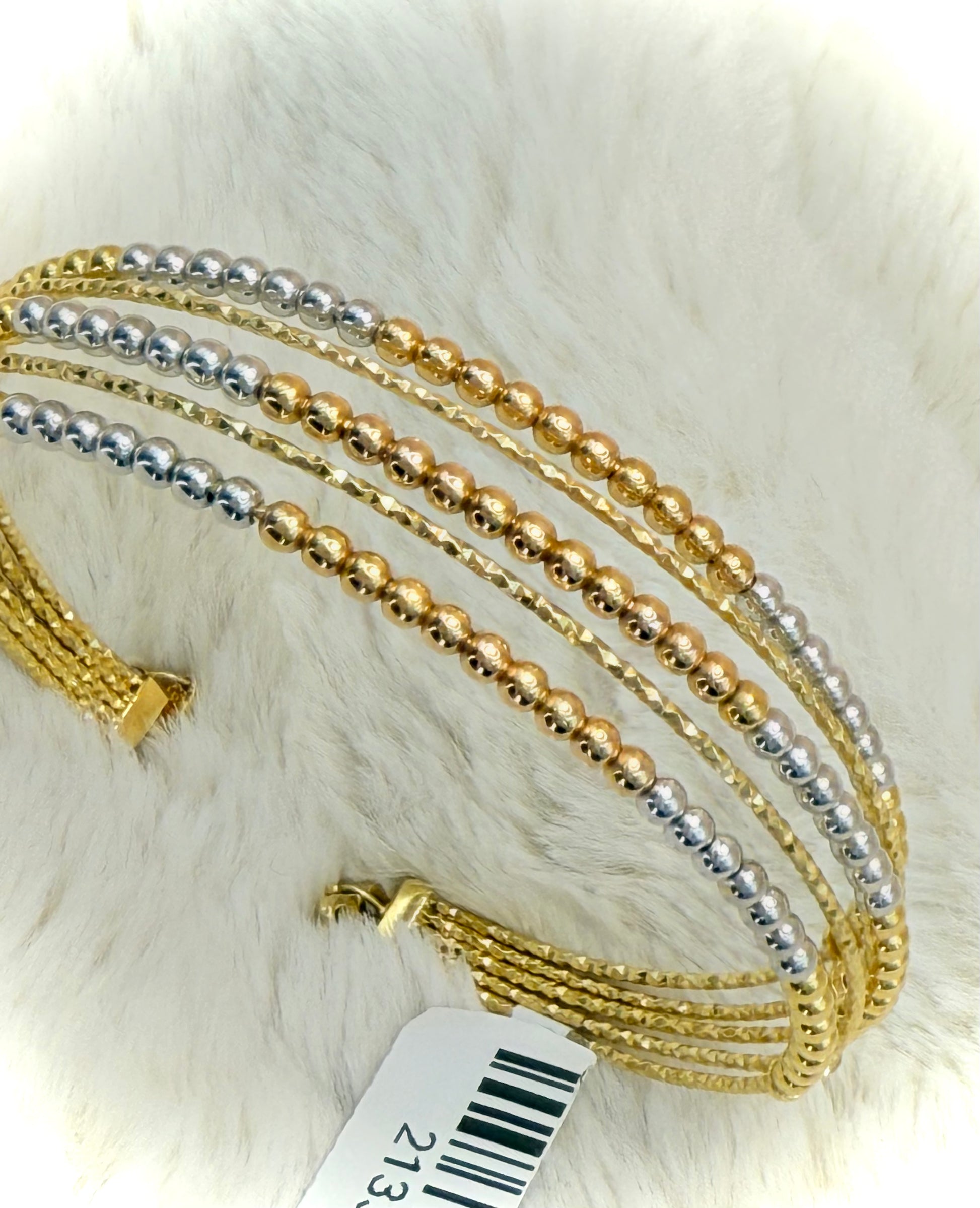 18K 3 Tone beads open Bangle