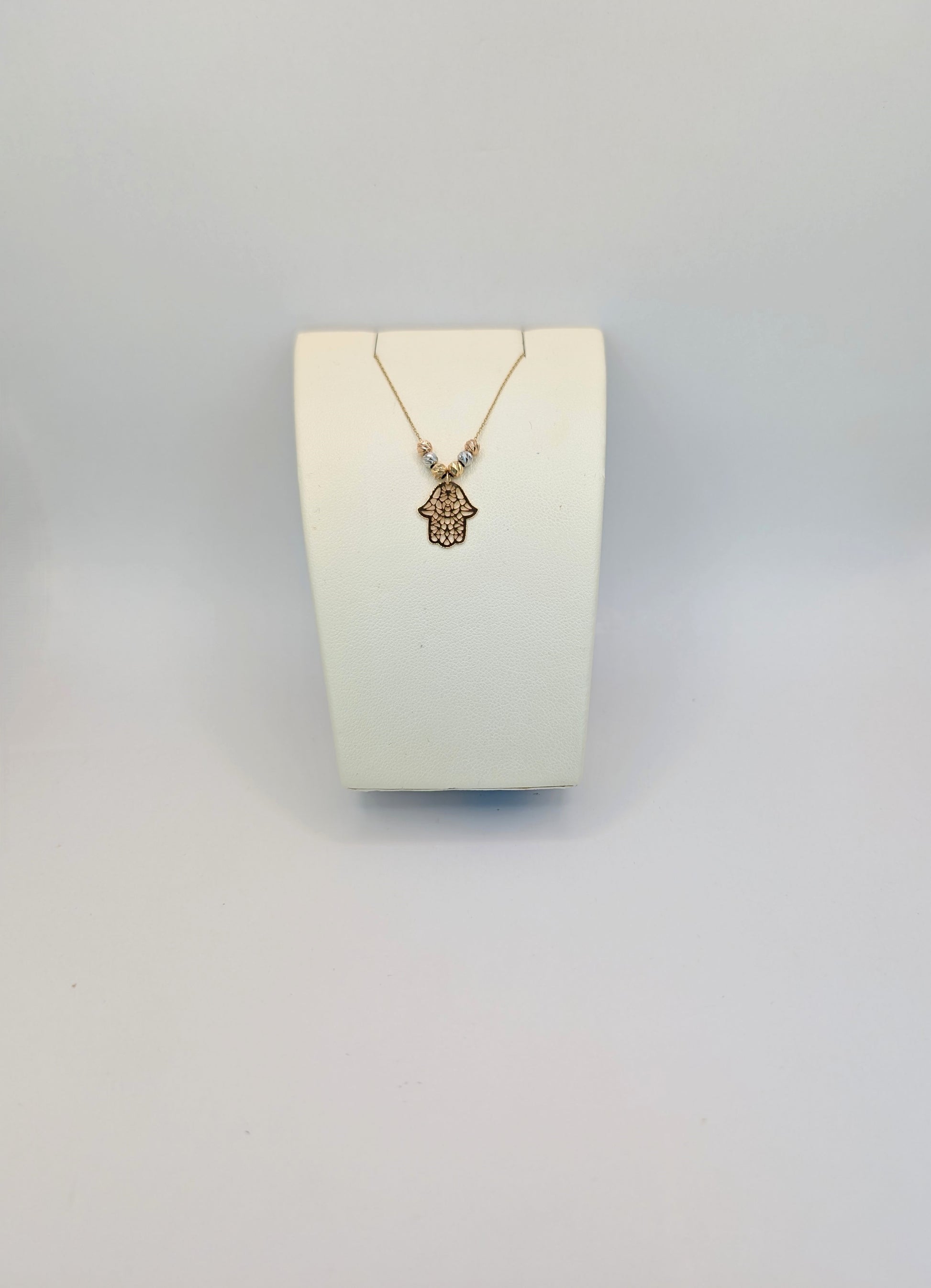 18 karat three tone Hamsa necklace